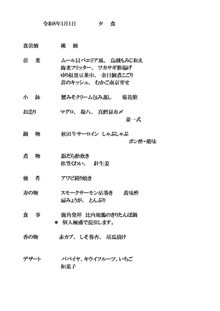 2025年12月30日~2026年1月2日の年末年始はお正月メニューとなります。